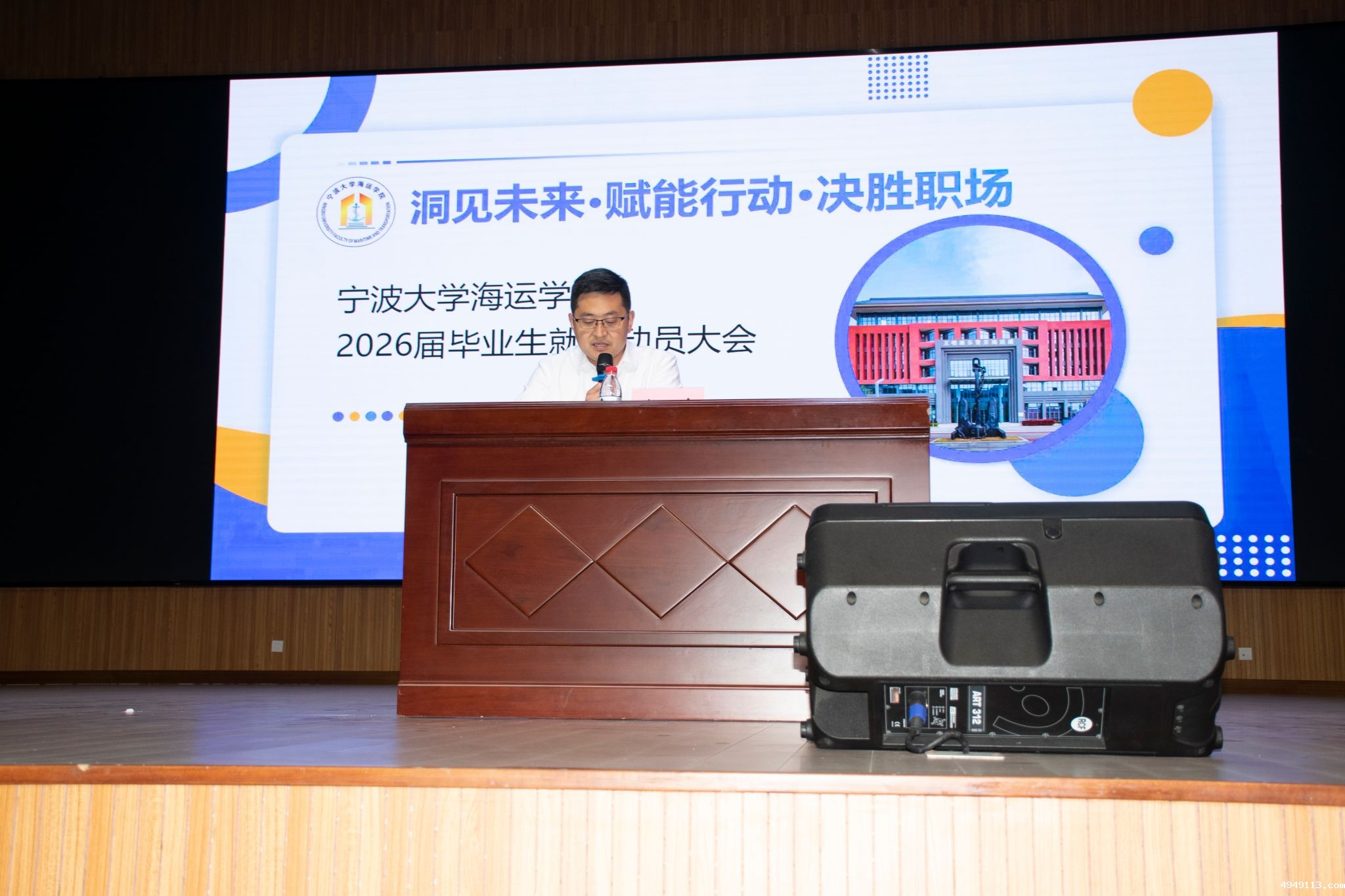 为引导学生提前规划、助力毕业生高质量就业,4月16日,海运学院在梅山大会堂召开2026届毕业生就业动员大会。本次大会以“洞见未来·赋能行动·决胜职场”为主题,学院学生工作负责人张宾、辅导员、班主任,2026届本科生、研究生共413人参加。